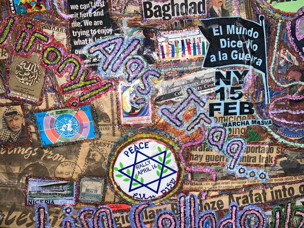 The work spans the late 1990’s through this year. The artist’s feelings and political leanings grab the viewer by the throat; they are insistent and unrelenting. The works reveal layer and layer of her observations of the world around her.