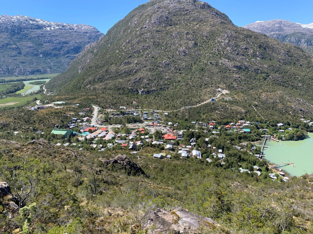Caleta Tortel was founded in 1955 but until 2003 it was only accessible by boat or plane. The town sits at the mouth of the Rio Baker, the gloriously turquoise fast-flowing river, the widest in all of Chile. The town sits amidst this swirl of rivers and estuaries and glaciers and fjords. We could see all of this from a climb to the top of the mountain against which the town is constructed.