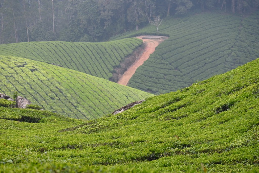 Here the mountain slopes are sculpted with the undulating hectares of tea trees, painstakingly pruned like bonsai.