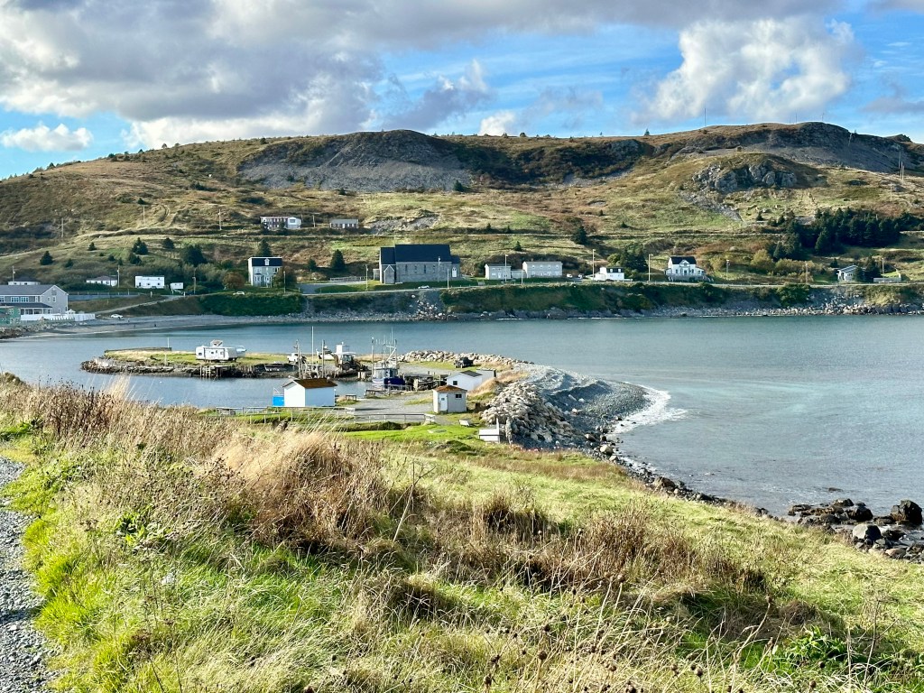 On the only sunny day of my six days in Newfoundland, I drove down the Irish Loop from St. Johns to Ferryland, a town founded in 1621. Ferryland sits halfway down the east coast of the Avalon Peninsula, nestled, like so many Newfoundland towns, in a cove framed by rocky cliffs. In mid-October, I parked near the now-closed visitor center and began the mile and a half walk toward the Ferryland lighthouse, at the end of a spit of land that starts narrow and then widens into a high rounded bulb.