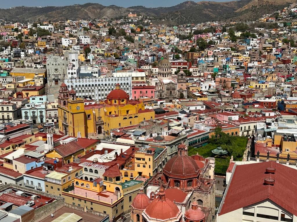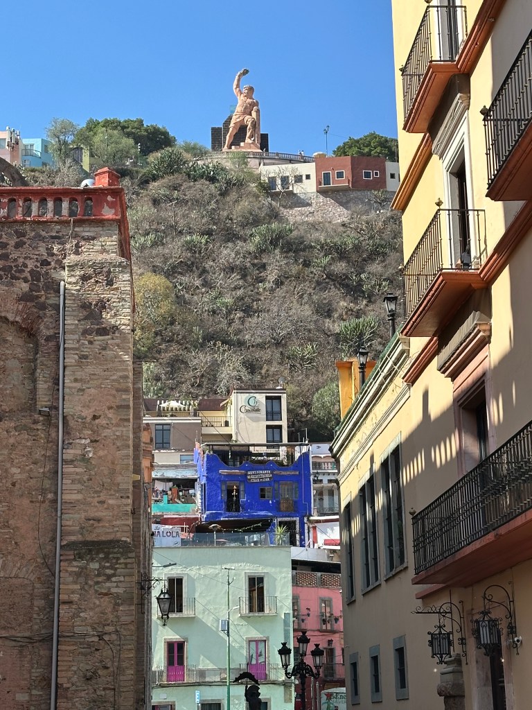 From the top of a funicular that took us up to the El Pípila statue which stands sentry over the city, we could see the vast expanse of brightly colored buildings anchored by the majestic 17th century yellow and ochre Basilica Colegiata de Nuestra Señora de Guanajuato. El Pipila was a fighter for Mexico’s independence, leading the first successful assault on the Alhóndiga, the Spanish grain exchange building, causing the War of Independence to explode.
