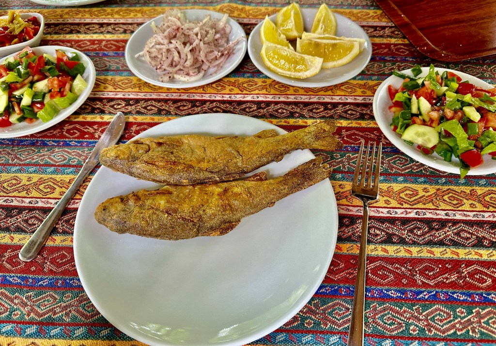Celil also led us to restaurants we likely would never have found: one built in a tree-house like structure next to a rushing stream and another, hardly a restaurant at all but a collection of outdoor table to which a young man, and then a woman, appeared to serve us fresh trout, grilled over an open flame, accompanied, as always, by fresh salad and bread, and of course, tea.