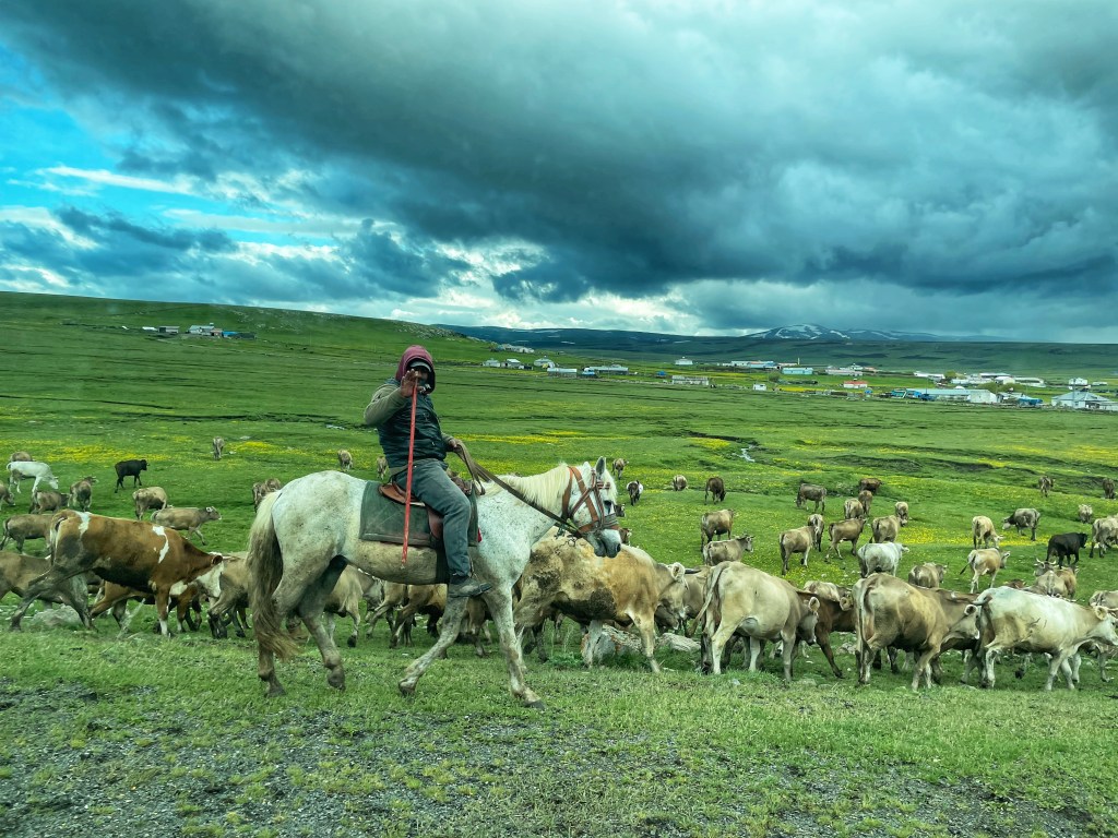 I began to feel accustomed to the vastness and emptiness of the place. But of course, it is not really empty, though you might not always know what you are seeing. What looked like a group of abandoned wooden huts was, as Celil told us, a “summer village”: a place where sheep and goat herders live for the summer while their flocks graze on the nearby steps.