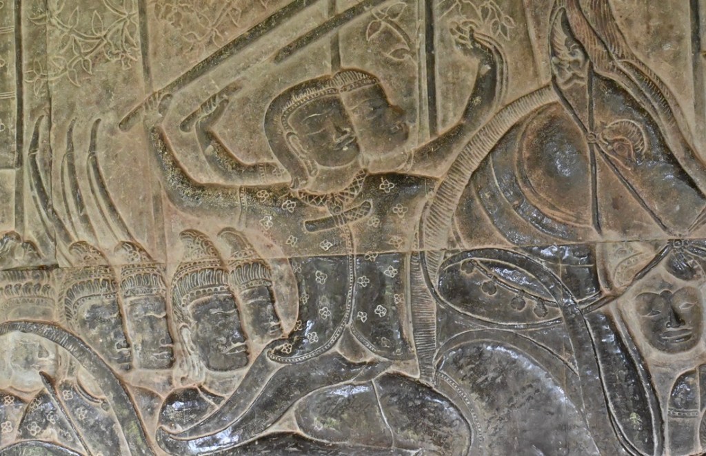 Bun delighted in pointing out the legends and history behind the now-faded carvings that adorn the stone walls: didactic drawings that illustrate the dismal fate of those who violate norms, stories from the Ramayana and Mahabharata of victories and defeats, images of god-heads.