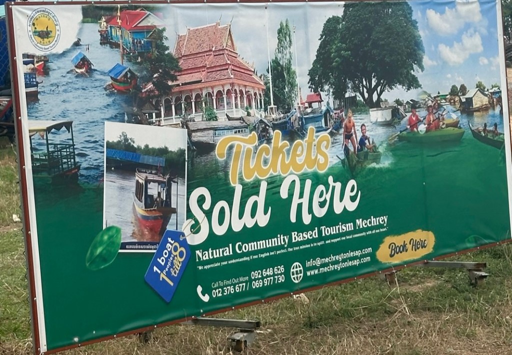 We park near a small collection of wooden buildings at the edge of the lake. A sign near the boat rental office proclaims “Natural Community Based Tourism” and in smaller letters “We appreciate your understanding if our English isn’t perfect. Our true mission is to uplift and support our community with all our heart”.