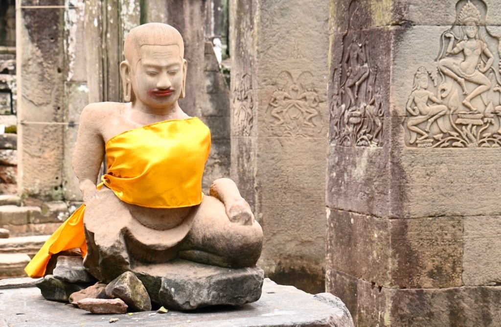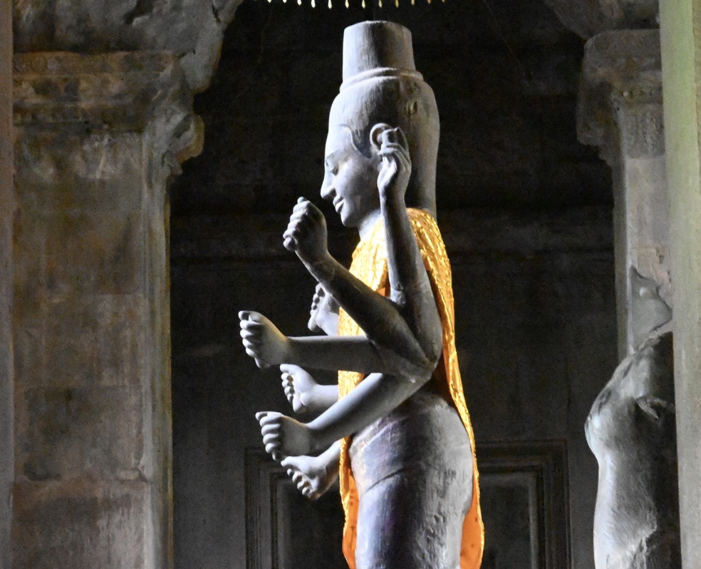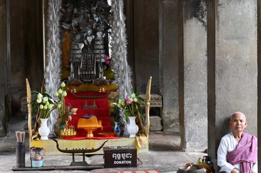 He tells us that in Cambodia the lines between Hindu and Buddhist practice are more blurred than in other parts of Southeast Asia. Angkor Wat feels as much like a living sacred place as a historical relic—one hears prayers and chants and sees altars brimming with offerings.