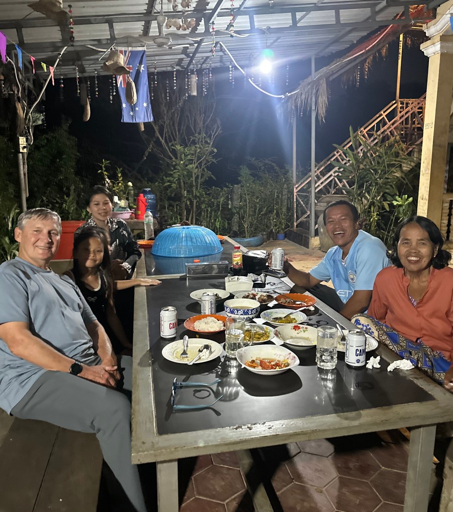 Bun and Marie and their three small children live downstairs but life centers around the outdoors. We ate meals cooked by Maria and her mom with the family at a long metal table. The three children practiced their English, always giving us hugs.