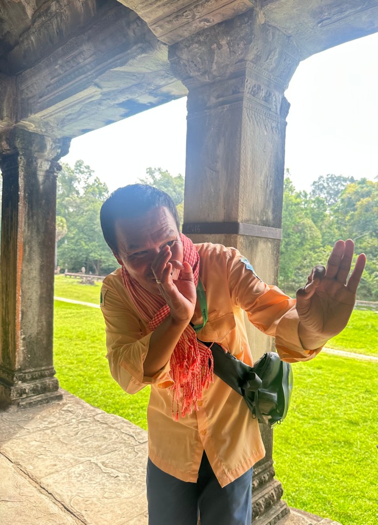 I recognized Bun immediately at the Siem Reap Airport—his eyes creased and mouth wide in his perpetual smile, the red Cambodian woven scarf around his neck, his face beaming with energy.
